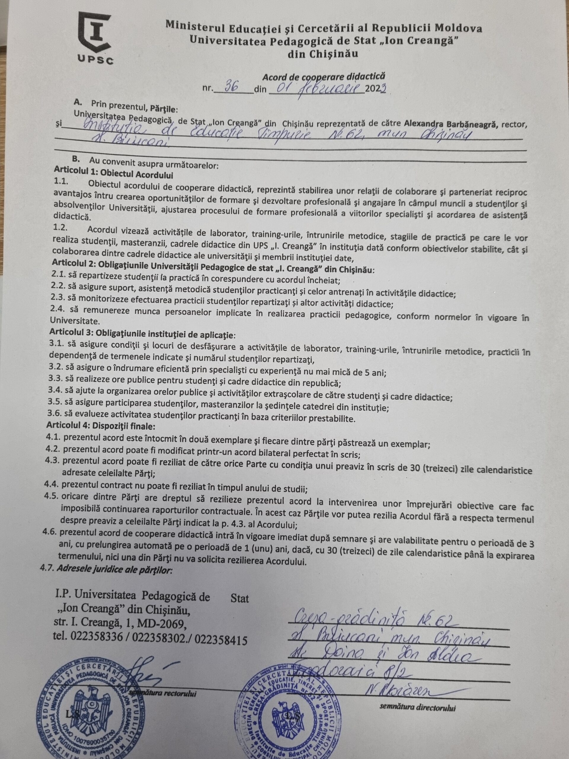 Acord de colaborare nr.36 din 01.02.2023